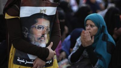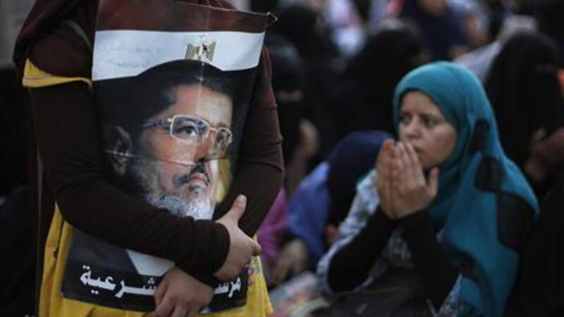 فتاة تحتضن صورة للرئيس المعزول محمد مرسي في القاهرة