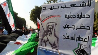معارضون سوريون امام مبنى الجامعة العربية في القاهرة