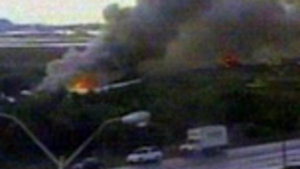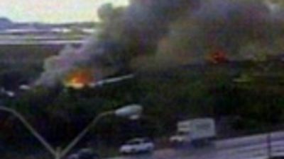 وظهرت الطائرة الضخمة في لقطات تلفزيونية وقد اشتعلت النار في مؤخرتها وتصاعد منها الدخان.