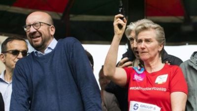 وبدا ميشال متألما في احدى الصور بينما أستريد، الشقيقة الصغرى للملك فيليب، تطلق طلقة البداية قرب أذنه اليسرى تمهيدا لانطلاق سباق جري لمسافة 20 كيلومترا في بروكسل الأحد بمشاركة حوالى 40 ألف شخص.
