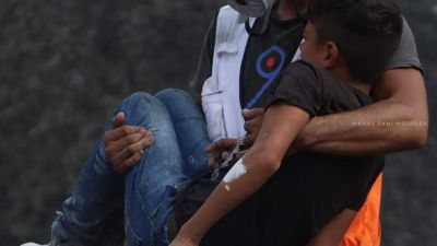 طفل يتشبث ببوظته على الرغم من إصابته برصاص قوات الاحتلال