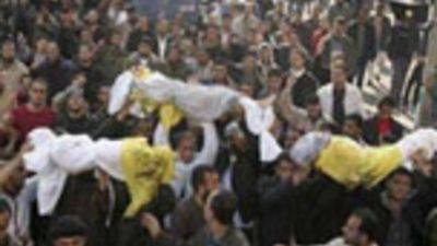 وانطلقت الجنازة بمشاركة نحو عشرة الاف شخص من مستشفى الشفاء بغزة، وحملت الجثامين التي لفت باكفان بيضاء الى منزل العائلة في حي الرمال حيث سجيت وسط الغضب والحزن، قبل ان تنقل الى مسجد "الكنز" القريب من المنزل حيث اديت صلاة الجنازة.