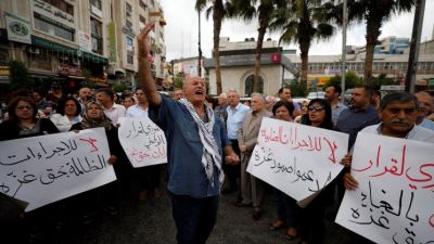 اعتصم عشرات الفلسطينيين في مدينة رام الله الثلاثاء، للمطالبة برفع “الإجراءات العقابية” عن قطاع غزة وصرف رواتب موظفي السلطة الفلسطينية فيه.