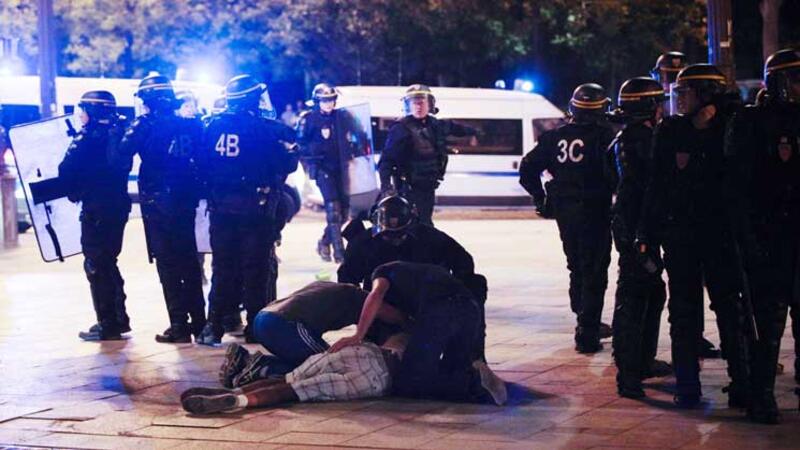 وقالت الشرطة ان الصدامات اندلعت قرب برج ايفل حين حاول مشجعون الدخول عنوة الى باحة البرج حيث كانت جموع من المتفرجين تتابع المباراة على شاشات عملاقة والتي اغلقتها السلطات منذ الساعة السابعة مساء لامتلائها عن بكرة ابيها (اكثر من 90 الف متفرج).
