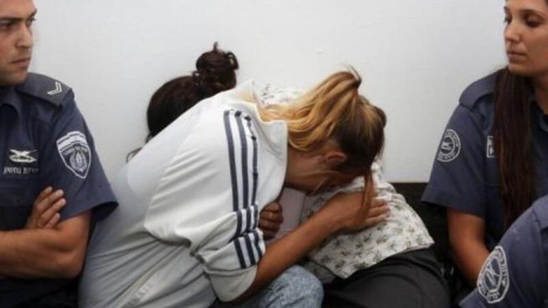 ودخل الشبان المتهمون مكبلي الايدي بالاصفاد والارجل بالجنازير، في حين دخلت احدى الفتاتين وهي ترتدي تنورة طويلة وسترة مقفلة وهو لباس المتدينات اليهوديات، في حين غطت الثانية شعرها ووجهها.