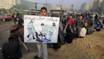 وينفي المجلس العسكري ان يكون اصدر اوامر باستخدام القوة ضد المحتجين، الا انه اعترف بان قواته ضربت ناشطة محجبة وقامت بجرها على الطريق وكشفت عن صدرها وبطنها. وتناقلت وسائل الاعلام العالمية والمواقع الالكترونية الصورة ما ادى الى سخط في العالم باسره.