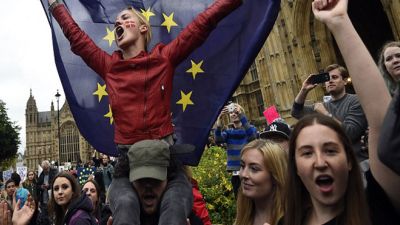 وكان أغلب المتظاهرين، من الشبان، والتف الكثير منهم بعلم الاتحاد الأوروبي، بينما رفع آخرون لافتات مؤيدة للبقاء في التكتل. وهتفوا “ماذا نريد أن نفعل؟ نبقى في الاتحاد الأوروبي”.