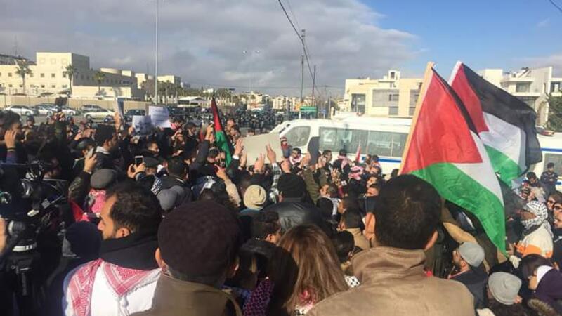 المئات من الأردنيين يعتصمون أمام مبنى السفارة الأميركية احتجاجا على قرار الرئيس ترامب