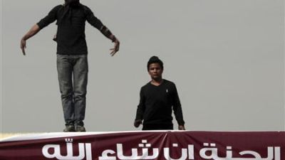 محتجان يشاركان في احتجاجات بالقاهرة