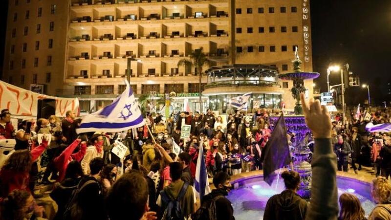 ويتظاهر المحتجون كل أسبوع منذ أكثر من 7 أشهر، أمام مقر إقامة نتنياهو في شارع "بلفور" في القدس، وأمام منزله الخاص في قيسارية وفي أهم الشوارع الرئيسية وعلى الجسور وعند تقاطعات الطرق، مطالبين بتنحي نتنياهو بسبب محاكمته بملفات فساد وسوء إدارته لأزمة وباء كورونا في إسرائيل.