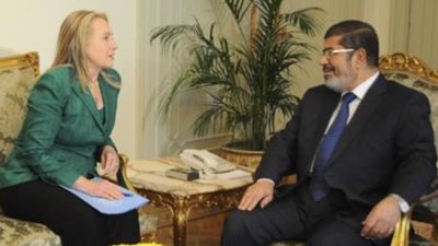 وشكرت كلينتون الرئيس المصري محمد مرسي على جهوده في الوساطة وتعهدت بالعمل مغ الشركاء في المنطقة "لتعزيز هذا التقدم وتحسين ظروف شعب غزة وتوفير الأمن لشعب إسرائيل."