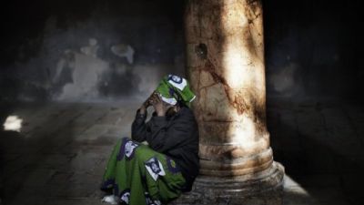 حاجة مسيحية من نيجيريا تصلي في كنيسة المهد في بيت لحم