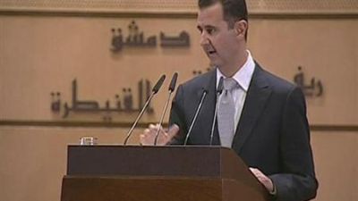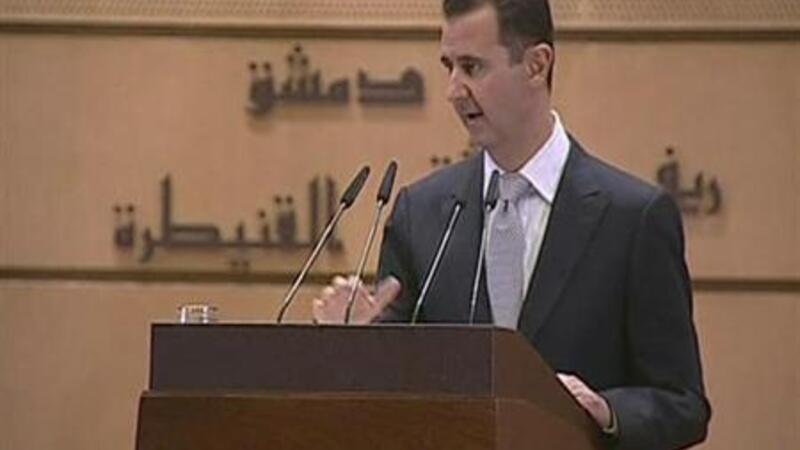 قال الرئيس السوري بشار الاسد في خطاب في دمششق الثلاثاء ان الاولوية الان هي لتحقيق الامن "وضرب الارهابيين والقتلة بيد من حديد"، واتهم اطرافا اقليمية ودولية بالسعي لزعزعة استقرار سوريا.