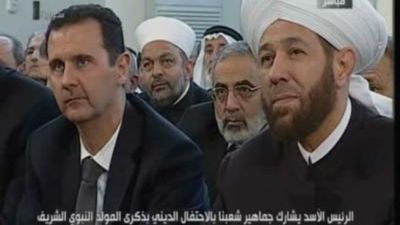 وقد ظهر الرئيس السوري بشار الاسد، على شاشة التلفزيون الرسمي السوري، وهو يشارك في مراسم عيد المولد النبوي في احد جوامع دمشق، وذلك للمرة الاولى منذ السادس من كانون الثاني/يناير.