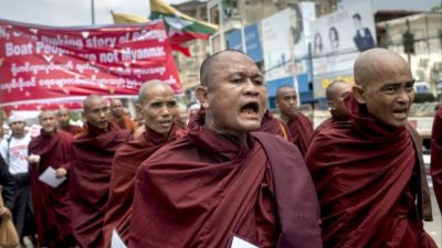 الاف البوذيين في بورما يحتجون على قرار يعترف باقلية الروهينغيا