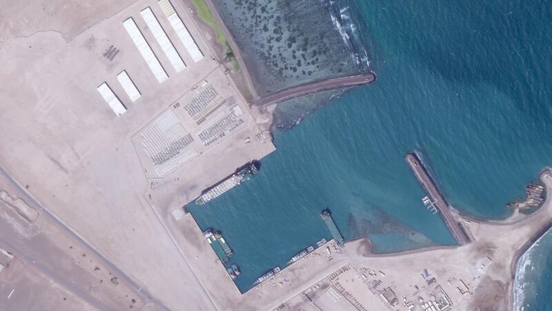وتظهر الصور التي التقطتها شركة Planet Labs بالتزامن مع إعلان أبوظبي عن سحب قواتها من اليمن تقريبا، عمالا يهدمون منشآت يعتقد أنها ثكنات بجانب الميناء، وتم جمع صفوف متقنة من مواد ومعدات في شمال الميناء، في انتظار شحنها على الأرجح.