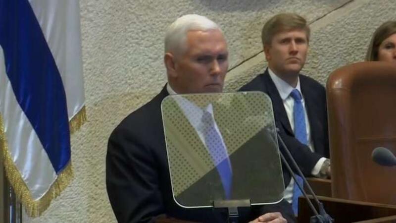 وفي وقت سابق أفادت وكالة "رويترز" بأن الامن الاسرائيلي منع نوابا من الكنيست الإسرائيلي، من الاعتراض على كلمة نائب الرئيس الأمريكي مايك بينس واقدمت على اخراجهم من القاعة بالقوة  ورفع النواب العرب لافتات احتجاجية وصورا للقدس تعبيرا عن رفضهم لزيارة بينس للمدينة المحتلة