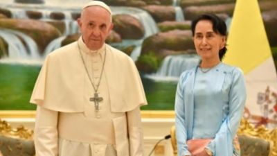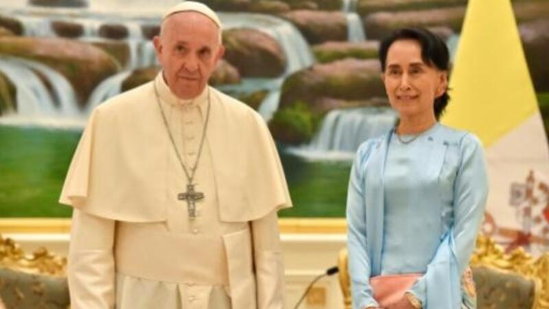 ويأتي خطاب البابا بعد لقائه الحاكمة المدنية لبورما اونغ سان سو تشي الذي يُعتبر محطة أساسية في زيارته الى البلاد التي تواجه ضغوطا دولية.