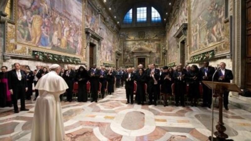 وعبر البابا (80 عاما) في كلمة مطولة امام السفراء المعتمدين في الفاتيكان عن الاسف ان يظل الدين في مطلع العام 2017 يستخدم "ذريعة للانغلاق والتهميش والعنف".
