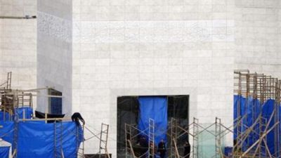 وشوهد عدد من العمال يعملون على ازالة الستائر البلاستيكية التي وضعت في محيط الضريح تمهيدا على ما يبدو لاعادة فتحه امام الزوار.