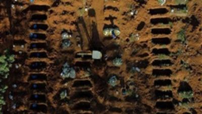 وتظهر لقطات الصور المقابر المفتوحة في مدينة ساو باولو، وهي أكثر المدن تضررا بتفشي فيروس كورونا التاجي.