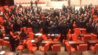 "حراس الليل" يثير عراكا بالايدي داخل البرلمان التركي