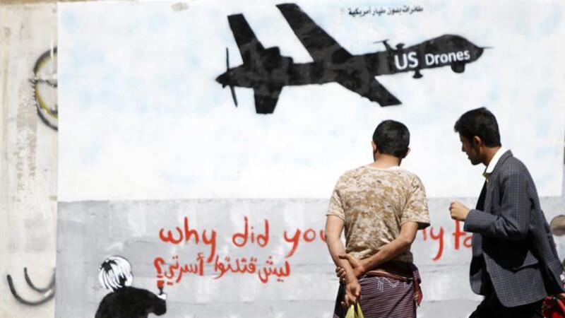 وهذه الغارات بطائرات بدون طيار والتي ادت الى مقتل العشرات من المتمردين المسلحين هذا العام تشنها على ما يبدو الولايات المتحدة حيث انها الوحيدة في المنطقة التي تملك هذه الطائرات كما انها تساعد السلطات اليمنية في حربها ضد هذا التنظيم.