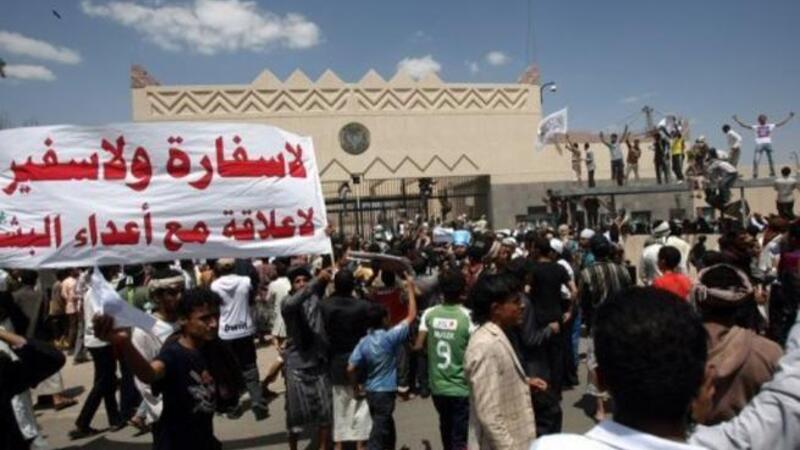 وذكر مراسلو وكالة فرانس برس في صنعاء ان قوات الامن المركزي وشرطة مكافحة الشغب انتشرت بكثافة في محيط السفارة بصنعاء بعد ان استخدمت الطلقات التحذيرية وخراطيم المياه لاخراج المتظاهرين.