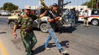 مقاتلون من المجلس الوطني الانتقالي متوجهين الى سرت