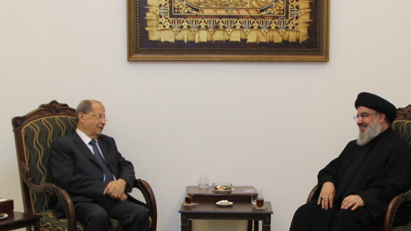زار رئيس تكتل التغيير والإصلاح النائب ميشال عون مساء أمس الأمين العام لـ"حزب الله" السيد حسن نصر الله لتقديم الشكر بعد الدعم الذي تلقاه من حزب الله وترشيحه لرئاسة لبنان.