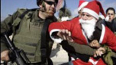 قام جنود اسرائيليون بضرب خمسة متظاهرين احدهم كان يرتدي ملابس "باب نويل" خلال تفريقهم تظاهرة ضد الجدار العازل قرب بيت لحم في جنوب الضفة الغربية.