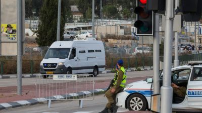 قوات أمن إسرائيلية خارج سجن عوفر. 25 تشرين الثاني، 2023م. وكالة الصحافة الفرنسية.