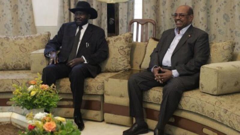 رئيس جنوب السودان سالفا كير (يسار) والرئيس السوداني عمر البشير خلال لقائهما في الخرطوم