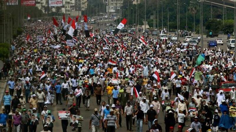 وأضاف اللواء موجهاً كلامه للمعتصمين "إذا كنت تعتقد أنك تدافع عن شرعية فالشرعية والسيادة للشعب.. وإذا كنت تعتقد أنك تنصر جماعة الإخوان المسلمين فإن خروجك الآمن السالم سيسمح للجماعة بالعودة إلى دورها ضمن العملية السياسية".