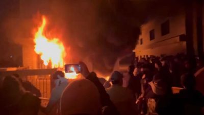 وأضرم محتجون مساء الأحد مقر الحزب في بغداد؛ رفضا لتغريدة كاتب كردي انتقد فيها المرجعية الدينية الشيعية.