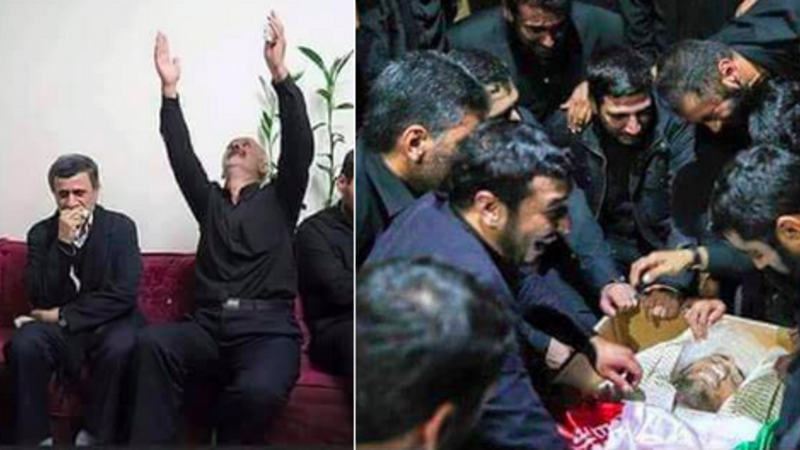 نشر النشطاء على مواقع التواصل الاجتماعي، صورة للرئيس الإيراني السابق محمود أحمد نجاد وهو يبكي شقيقه الذي قتل في العراق.