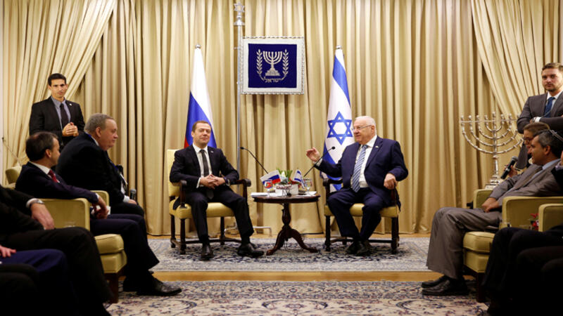 الرئيس الإسرائيلي رؤوفن ريفلين ورئيس الوزراء الروسي ميدفيدف
