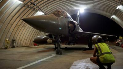 مقاتلة فرنسية تستعد للاقلاع من قاعدة جوية للمشاركة في قصف المتمردين/أ.ف.ب