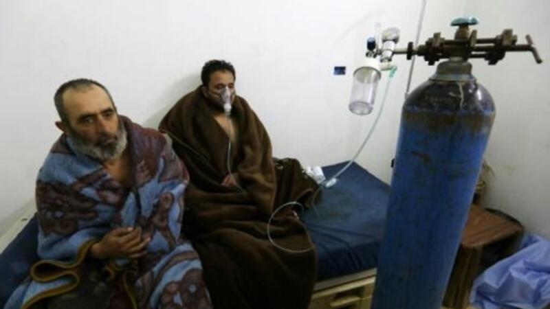 سوريون ذكرت تقارير أنهم عانوا من صعوبات في التنفس بعد غارات نفذها النظام السوري على بلدة سارقب في شمال غرب البلاد في مستشفى ميداني قرب البلدة