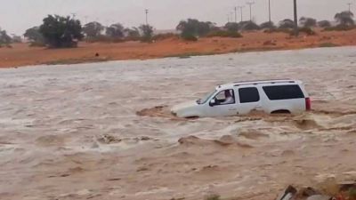 السعودية: سيول تقطع الطرقات وتجرف المركبات (فيديو)