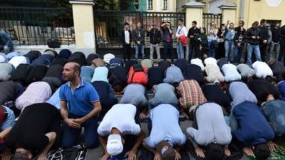 مئات المسلمين الروس يؤدون الصلاة أمام سفارة بورما في موسكو