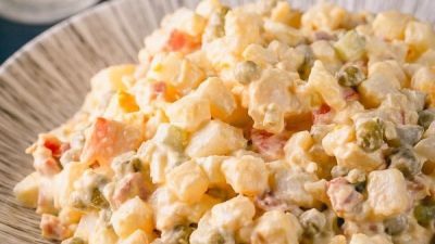 غاب طبق السلطة الروسية عن قائمة المأكولات التي تناولها قادة حلف الشمال الاطلسي "الناتو" عن الاطباق الرئيسية علما انه احد الاطباق المتواجدة بشكل بديهي في كافة مكاعم العالم
