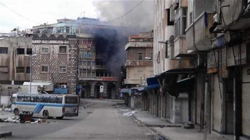 دخان يتصاعد من مبنى في حمص يوم الاحد