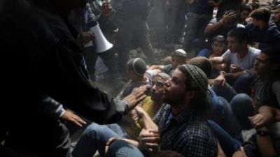 ووصل مئات من افراد الشرطة من دون اسلحة لاجلاء المستوطنين بشكل سلمي.