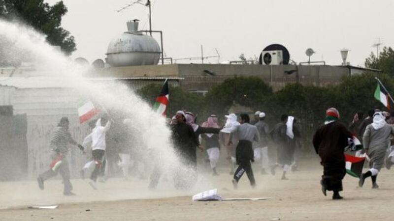 اطلقت شرطة مكافحة الشغب الكويتية الغاز المسيل للدموع واستخدمت خراطيم المياه الجمعة لتفريق المئات من المتظاهرين من البدون المحرومين من الجنسية، في تحرك اثار غضب جماعات سياسية ونواب سابقين.