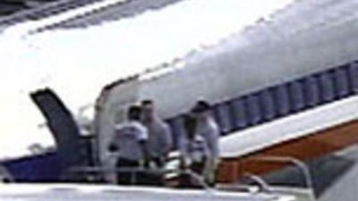 واظهرت لقطات تلفزيونية سيارات الشرطة وما يبدو انها مركبات لقوات خاصة تحيط الطائرة، فيما شوهد عدد من رجال الامن يهرعون باتجاهها وفي ايديهم بنادق.