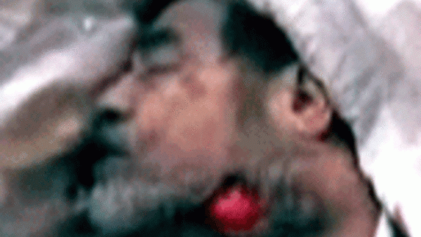 وظهر في التسجيل الذي يستغرق 27 ثانية وهو ثالث تسجيل يظهر لعملية الاعدام من يزيح غطاء عن وجهه حيث بدا على خده الأيسر آثار دماء وجرح غائر في عنقه.
