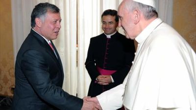 وكان الكرسي الرسولي أعلن، الجمعة، أن البابا فرنسيس الذي أعرب عن قلقه إزاء قرار واشنطن الاعتراف بالقدس عاصمة لإسرائيل سيلتقي العاهل الأردني الثلاثاء.