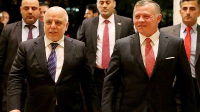 استقبل العاهل الاردني الملك عبد الله الثاني مساء الأحد رئيس الوزراء العراقي حيدر العبادي في لقاء جرى خلاله بحث “الحرب على الارهاب” حسبما افاد بيان صادر عن الديوان الملكي.