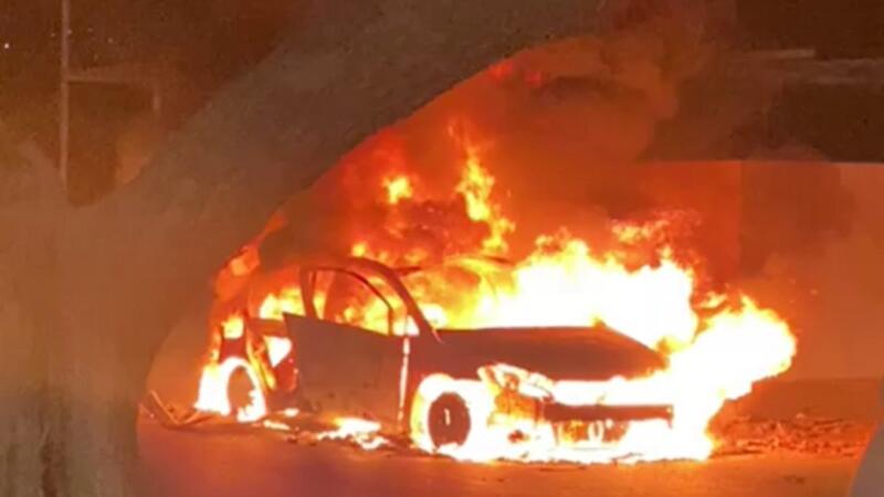 وبحسب المعلومات بدأ الحريق في السيارة على ما يبدو نتيجة انفجار قنبلة.
